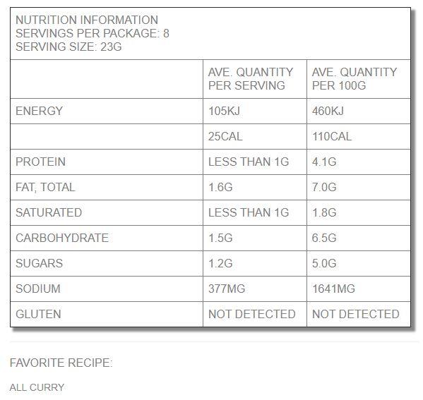 AYAM™ Curry Pastes (excl. AYAM™ Nasi Goreng Paste 185g and AYAM™ Japanese Curry Paste 185g) are endorsed by Coeliac Australia.