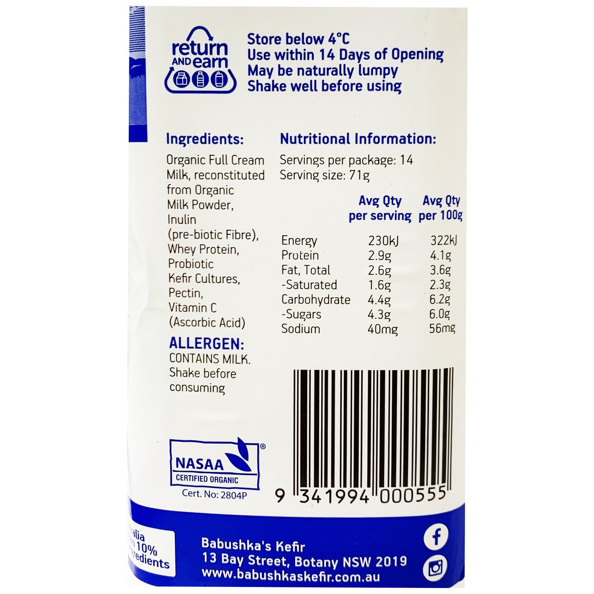 Babushka - Yoghurt Probiotic Kefir - Organic Natural (1kg)