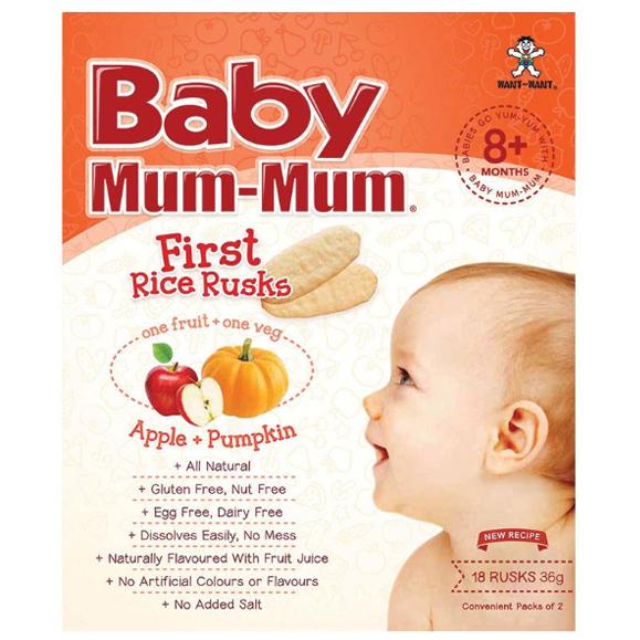 Baby Mum Mum - First Rice Rusks - Apply and Pumpkin (8 Months Plus, 18 Rusks, 36g)