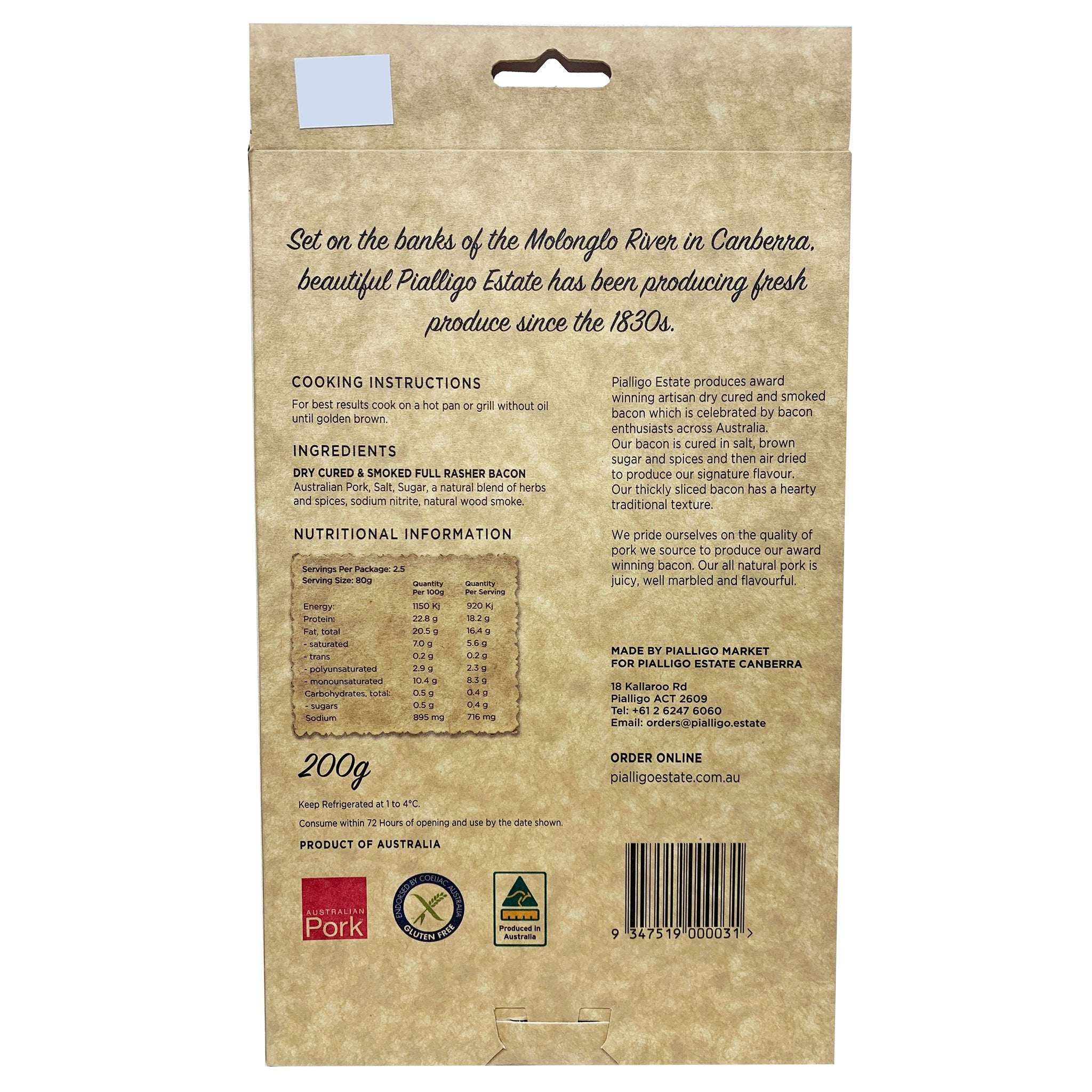 Bacon - Smoked Full Rasher (200g) Pialligo Estate