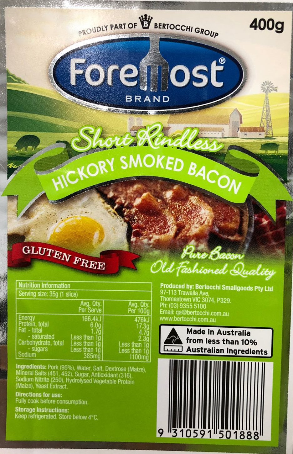 Bacon - Hickory Smoked - Shortcut Rindless (400g) Foremost